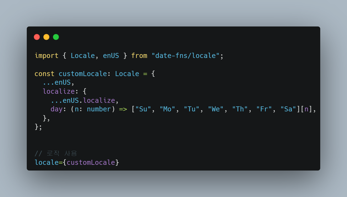 요일 표시 포맷 등 현지화 설정 → 영어 요일을 Su, Mo 등 짧은 형식으로 커스터마이징