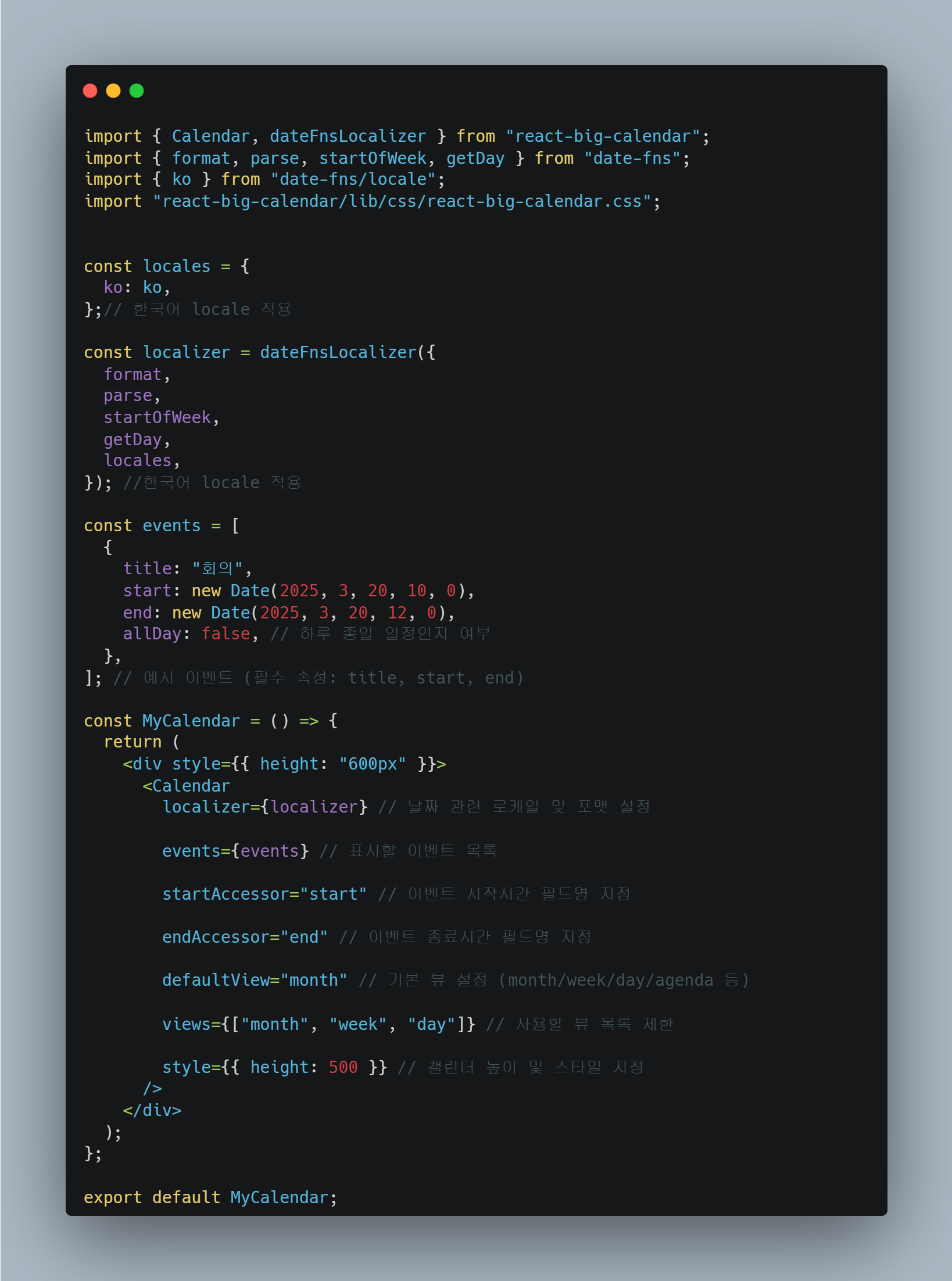 → UX/기능 확장을 위해 react-big-calendar 도입