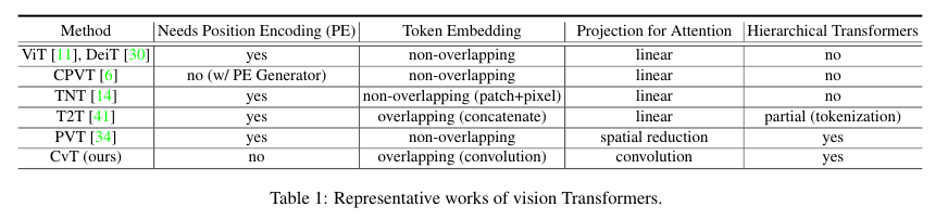요약하면, 우리가 제안한 컨볼루션 비전 트랜스포머(CvT)는 로컬 수용 필드, 공유 가중치 및 공간 하위 샘플링과 같은 CNN의 모든 이점을 사용하는 동시에 동적 주의, 글로벌 컨텍스트 융합 및 더 나은 일반화라는 트랜스포머의 모든 장점을 유지한다.