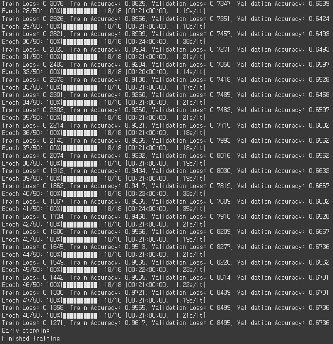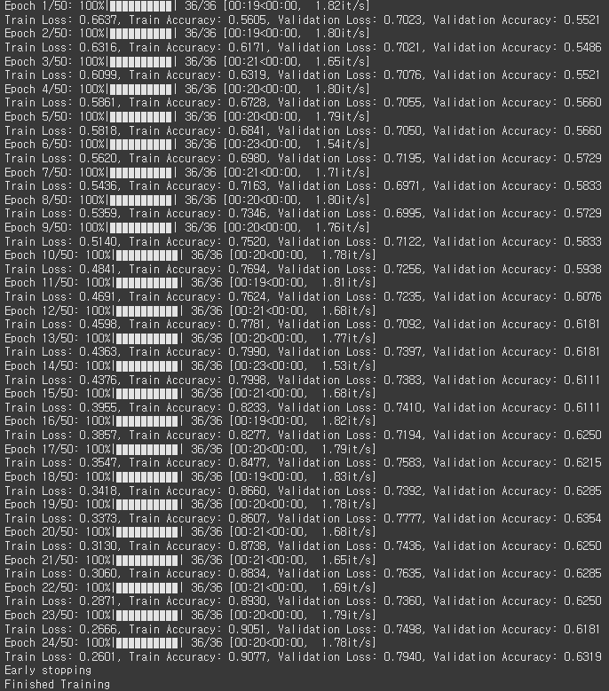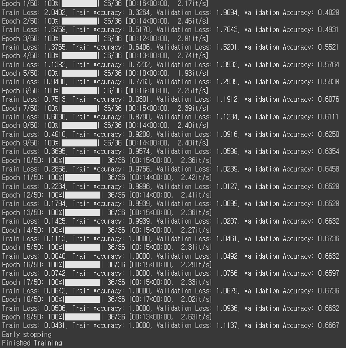 if no_improve >= patience: # 설정한 얼리 스타핑 patience에 도달하면 학습을 중단합니다.