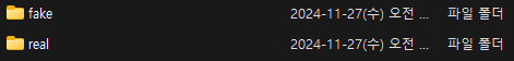 하위 파일은 fake와 real로 다시 나누었습니다. (후에 파일명으로 label 예정)
