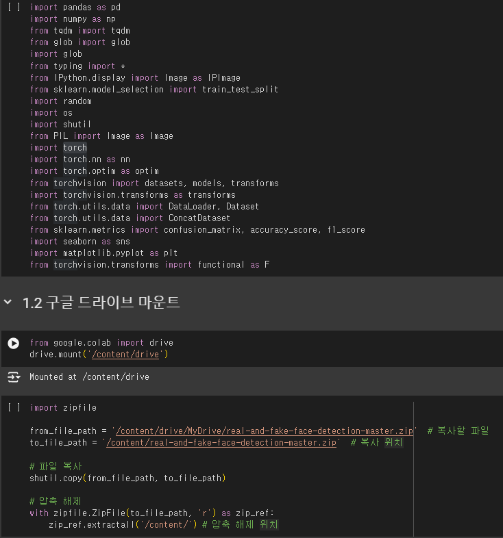 필요 라이브러리를 import 하고, colab에 구글 드라이브를 연결