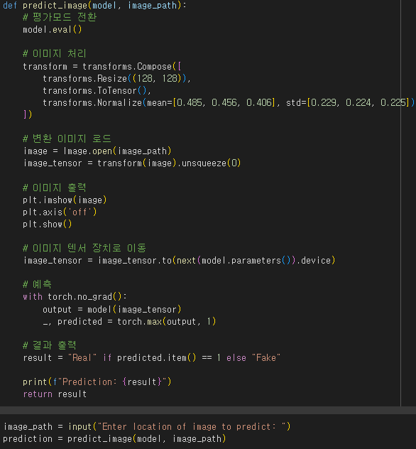 - 마지막 완전연결층 출력을 2로 수정 (real/fake 이진분류를 위함)