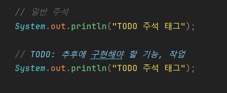 TODO 태그는 앞으로 구현해야 할 기능, 코드 개선이 필요한 부분을 표시하는데 사용한다.