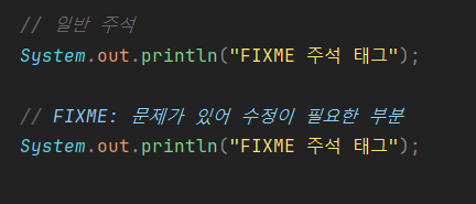 FIXME는 현재 코드에 문제가 있거나 수정이 필요한 부분을 표시하는데 사용한다.