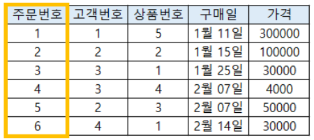 예를들어 밑에 표에서는 주문 릴레이션에서 구매일에는 날짜데이터만 넣을 수 있습니다.