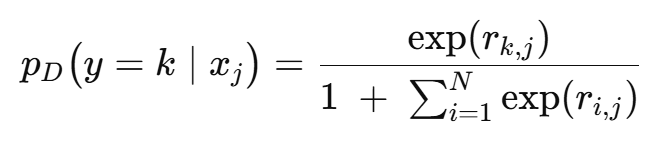 기존 Relation Network와 달리, r(i,j)를 (0,1) 범위로 제한하지 않고 소프트맥스 분류의 logit으로 직접 사용한다. 쿼리 이미지 xj가 클래스 k일 확률은 아래와 같다.