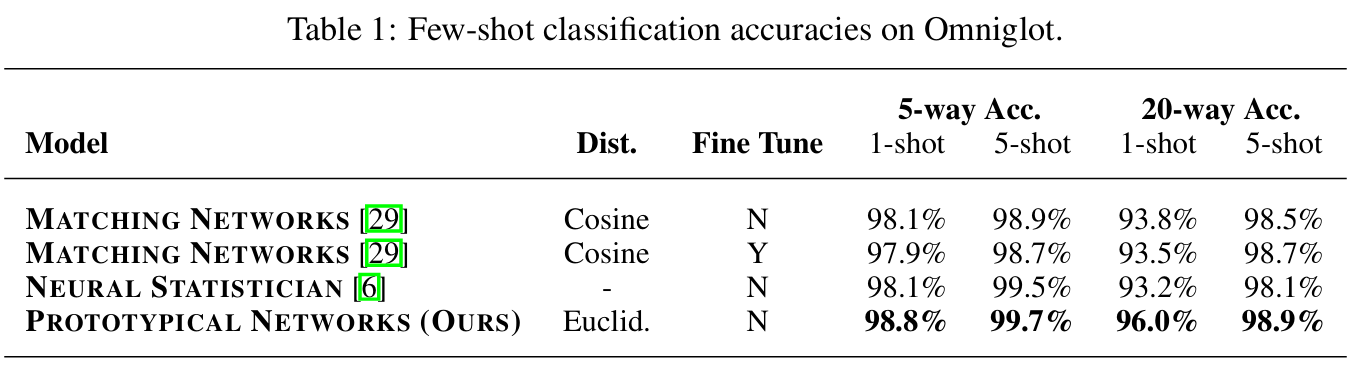 전반적으로 프로토타입 네트워크의 단순성과 효과성은 few-shot learning을 위한 매우 유망한 접근법임을 시사한다.