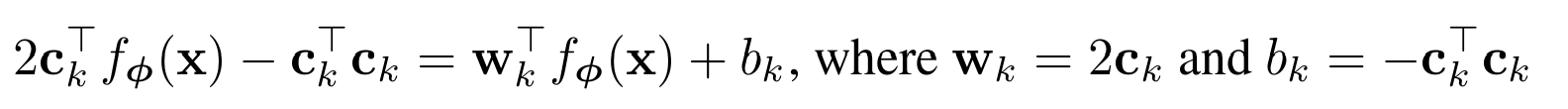 프로토타입 네트워크는 임베딩 함수 fϕ를 통해 비선형 변환된 피처 위에서 각 클래스별로 가중치 wk, 편향 bk를 갖는 선형 분류기를 수행하는 것과 동일하다. 유클리드 거리가 선형 모델과 동등함에도 불구하고 효과적인 이유는 필요한 모든 비선형성이 임베딩 함수 안에서 학습될 수 있기 때문이다.