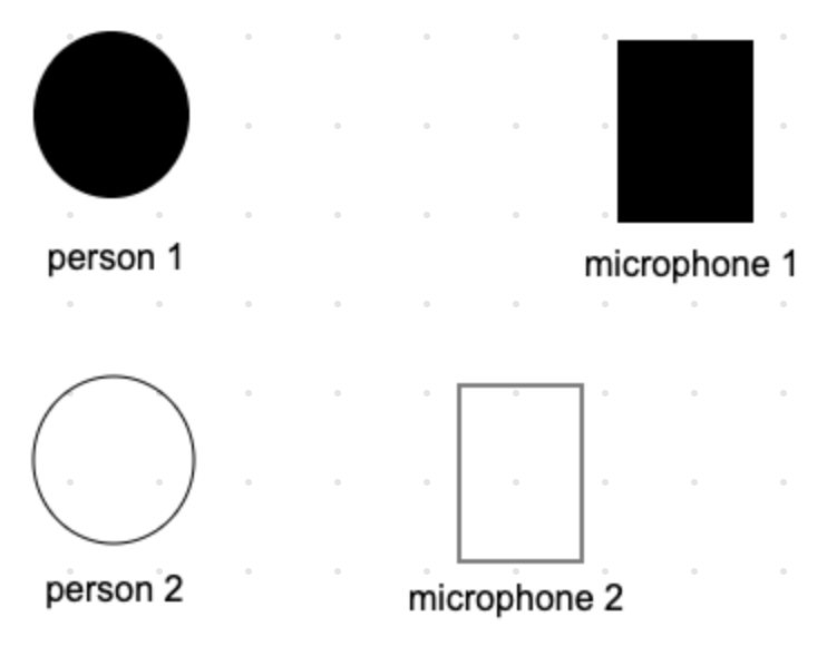 칵테일 파티에서 두 사람이 있고, 각각 마이크를 가지고 있는데, 마이크의 거리가 각각 다르다고 해보겠습니다.