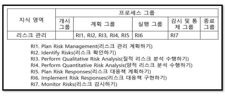 프로젝트가 처한 상황에서 리스크를 어떻게 잘 다루어서 성공으로 이어지게 할 것인가에 대한 관리 영역.