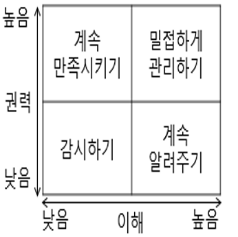 이해관계자의 유형에 따른 관리 전략을 세워야 한다.