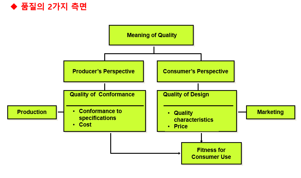 예를 들어, 당신이 어떠한 화장품에 대한 마켓팅 프로젝트를 진행하고 있다면, 해당 프로젝트의 품질 관리는 화장품의 품질을 관리하는 것이 아니다. 그것은 제품을 관리하는 다른 팀의 품질 관리 영역이고, 마켓팅 프로젝트에서의 품질 관리는 홍보물에 대한 품질 관리, 이용자들과의 소통에 대한 품질 관리, 또는 보편적으로 홍보가 잘 진행되고 있는지에 대한 관리가 포함될 것이다.