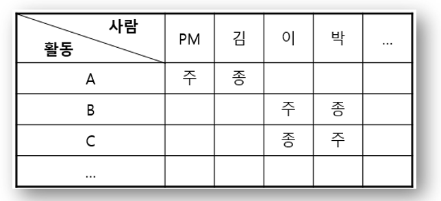 책임 배정 매트릭스를 사용하여 활동에 대한 책임자를 표현한다.