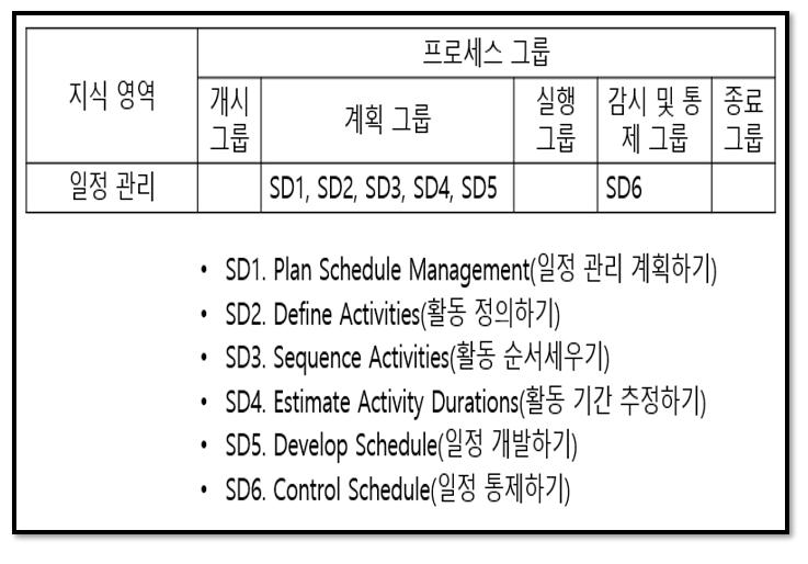 프로젝트가 정해진 시기에 완료될 수 있도록 관리하는 것을 일정 관리라고 한다.
