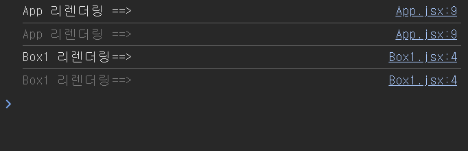 +버튼을 한 번 눌렀을 때 최초 렌더링이후에 App컴포넌트 이외에변화가 없는 자식 컴포넌트들 까지 리렌더링이 발생한다.이를 해결하기 위해React.memo를 사용한다.