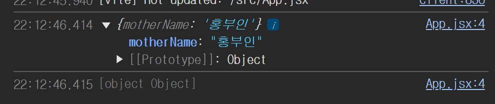 { } 중괄호를 사용하면 자바스크립트 코드를 사용할 수 있습니다.props.motherName형태로 사용하는 이유는 props는 객체 형태로 넘어오기 때문입니다.