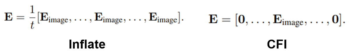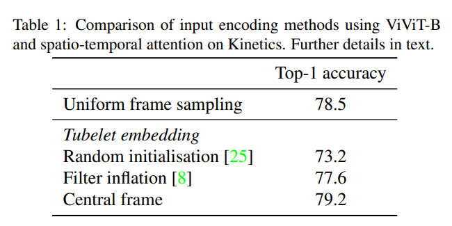- Introducing에서 설명했듯, VIT의 임베딩 가중치를 사용하기 위해 Inflate(프레임의 평균) 또는 Central Frame Initialization(중앙 프레임) 방법을 사용한다.