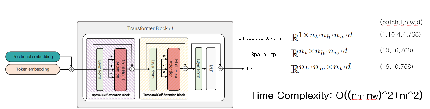 - Time Complexity : O((nt⋅nh⋅nw)^2) (t개의 이미지가 attention연산을 진행)