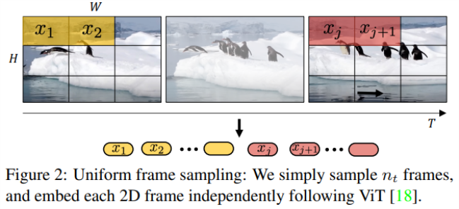 - 영상에서 일정한 간격으로 토큰 생성 후 임베딩하여, 모든 토큰이 VIT의 입력으로 들어간다.
