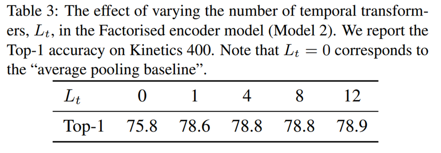 Model 2에서 Temporal transformer의 개수에 따른 성능 차이