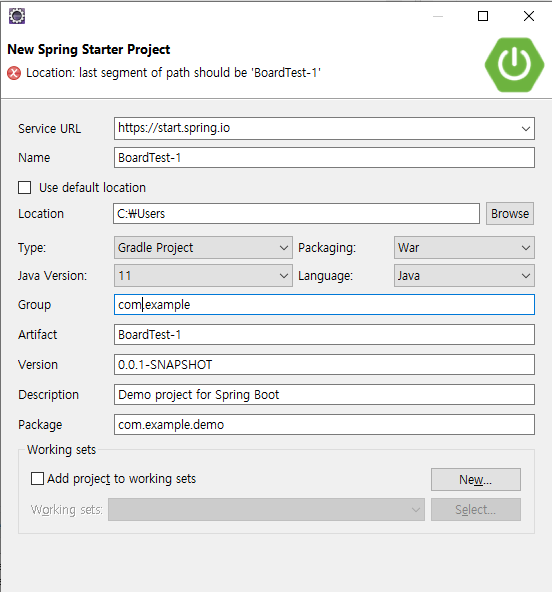 Spring Boot / Spring Starter Project 선택