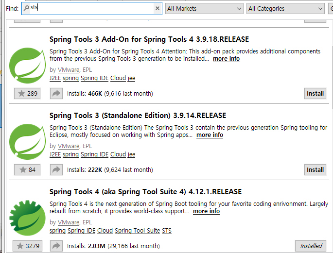 - 위의 공식페이지 에서 Eclipse용 STS를 다운받아 적용 하거나