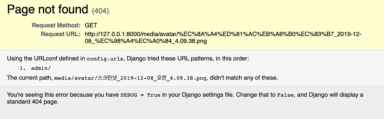 이는 장고가 에러가 났을 때 개발자를 위해 에러 페이지를 띄워주는 것을 말한다.