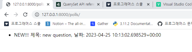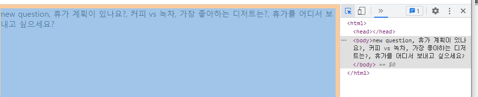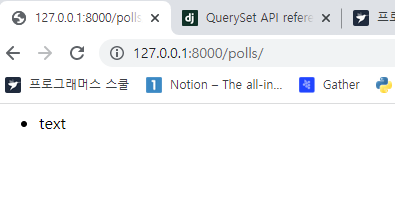 이제 인덱스 메소드에서 출력되는 내용을 question을 불러와서 표시하는 것으로 바꿀 예정.