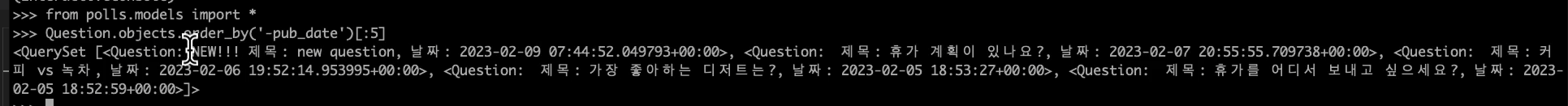 pub_date를 DESC 내림차순 정렬한 것을 알 수 있다.