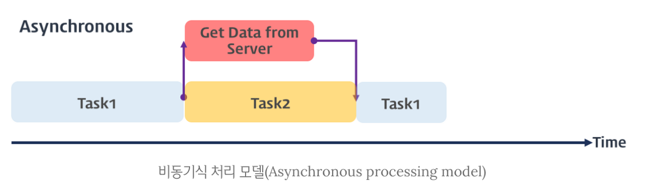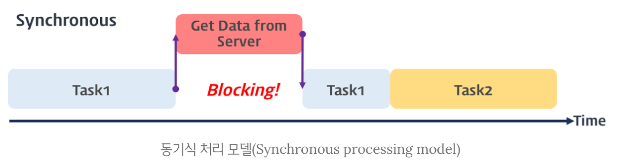 서버에 데이터를 요청하고 데이터가 응답될 때까지 이후 태스크들은 블로킹(blocking, 작업중단) 된다.