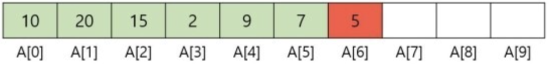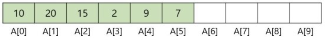A[6]에 5라는 값을 넣고, 혹은 빼고 싶을 때 해당 인덱스값을 알고 있다면 접근의 개념으로 O(1)의 시간복잡도를 가지지만 해당 인덱스를 찾아야한다면 검색의 시간복잡도인 O(n)에 해당합니다.