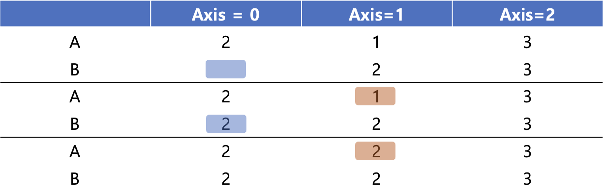 np.argmin(arr_a,axis=0) # arr_a가 2차원 배열 이상일 때, axis를 이용하여 index를 return 받을 수 있다.