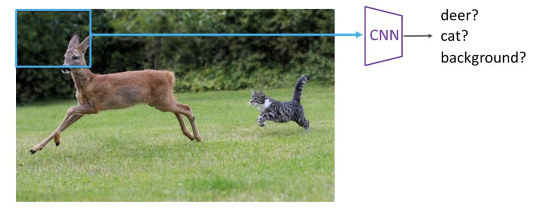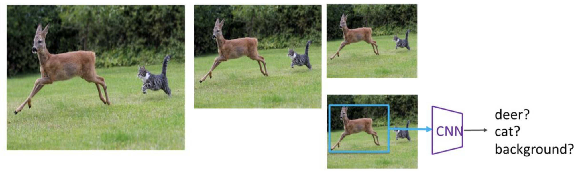 - 하지만 이와 같은 Window Sliding방식은 stride나 Up, down-sampling처럼 다양한 window를 만들기 때문에 연산량이 많아 시간도 오래걸리고, 실시간 처리가 불가하다..!