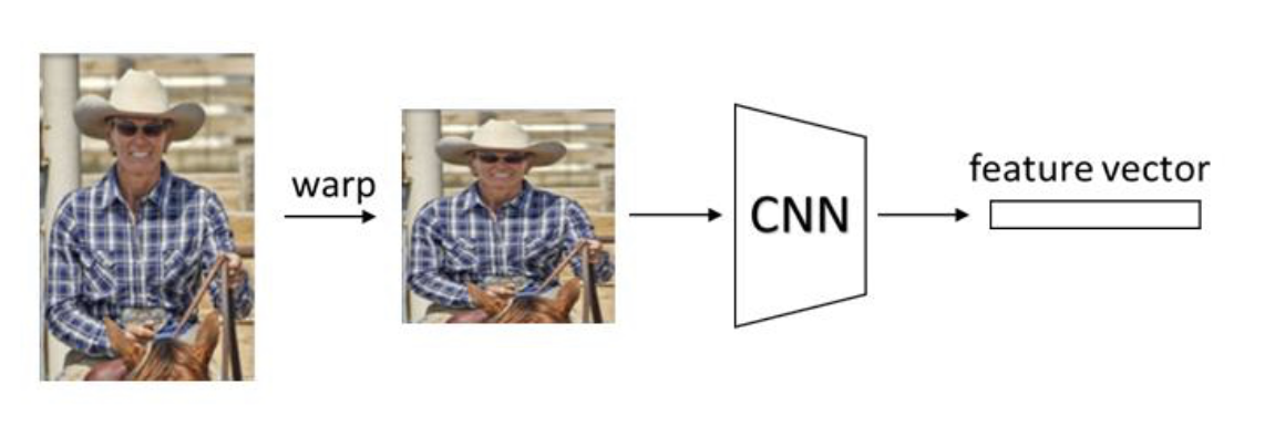 - Region Proposal에 주어지는 Bounding Box를 Warping기술을 적용(warped region)해 CNN층의 입력으로 사용한다.