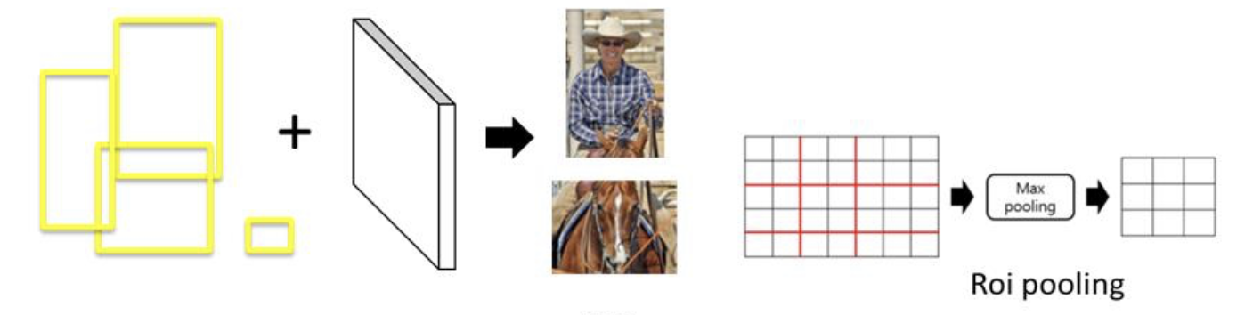 Fast RCNN에서는 convolutoin feature map을 얻기 위해 3~4단계의 conV층과 maxpooling층을 갖는 딥러닝 알고리즘이 수행되는데, 이 때 고정된 크기의 feature map을 얻기위해 Roi pooling을 수행한다.
