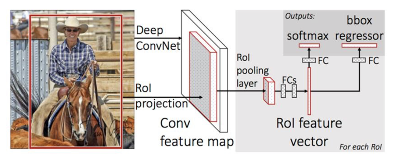 - Roi pooling을 통해 마지막 네트워크의 입력값으로 변환을 한 후, 분류와 회귀의 작업을 통해 최종 출력값으로 출력하게 된다.