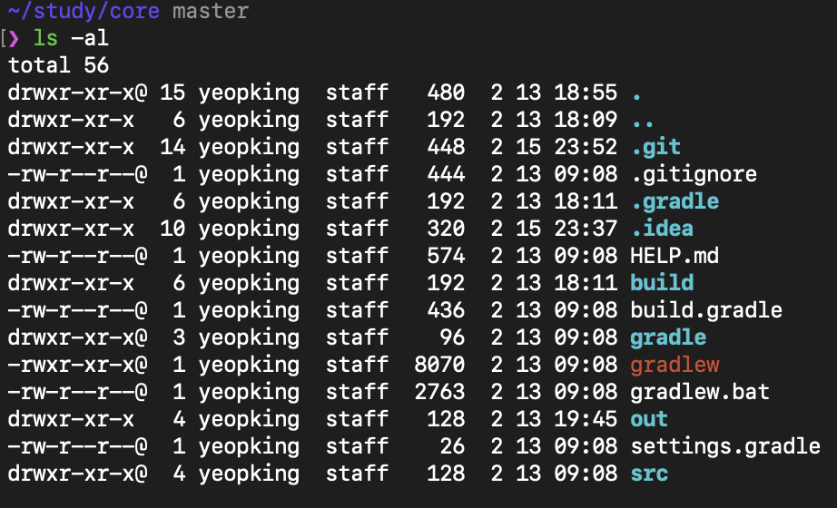 터미널에서 파일들의 권한을 보고싶다면 ls -al(숨겨진파일) / ls -l (보여지는파일) 으로 볼수있다.