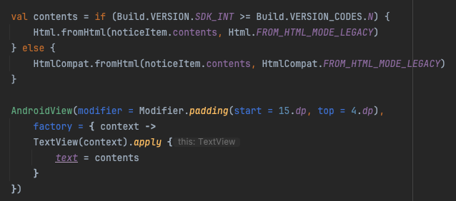 Compose 에서 Html 코드를 을 어떻게 해야 Text에 set 해줄 수 있는지 궁금해서 방법을 찾아보았다.