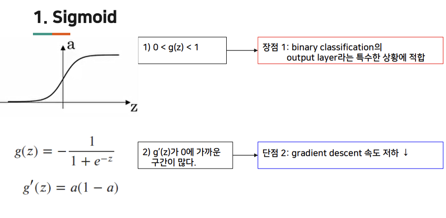 - 0과 1 사이, binary classification 에서 사용