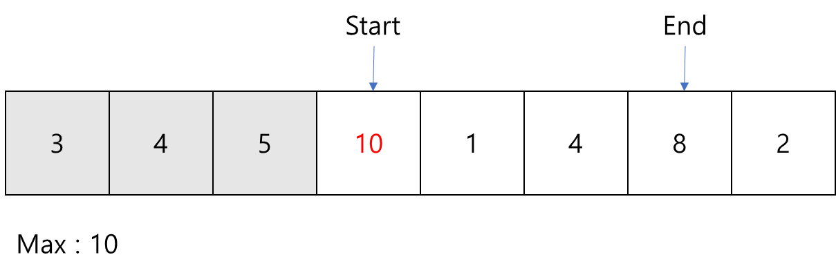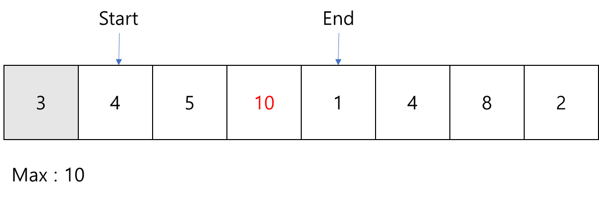 그리고 만약 부분 배열에서 제외된 원소의 값이 최댓값이었다면 새로운 부분 배열에서 최댓값을 다시 찾습니다.