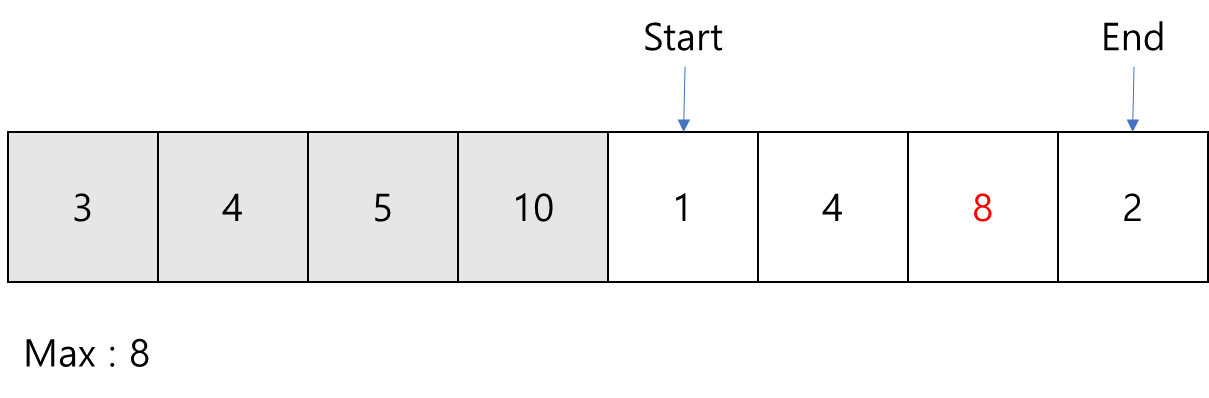 새롭게 들어오는 값이 최댓값보다 크면 다행이지만, 보다 작을 경우 이미 부분 배열의 원소가 아닌 값이 최댓값으로 유지되는 문제가 생깁니다.