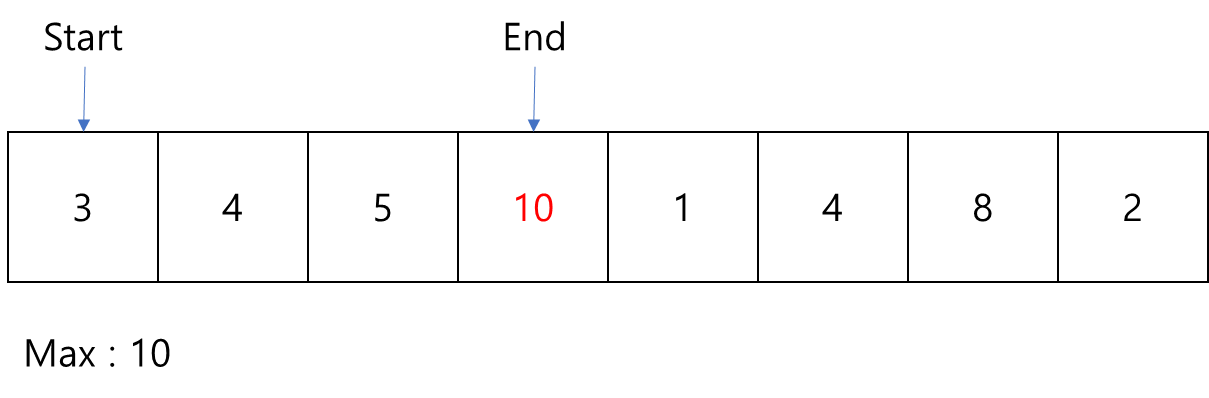 따라서 부분 배열마다 최댓값을 찾을 필요가 없고, 새롭게 들어오는 값과 기존 최댓값을 비교하면 됩니다.