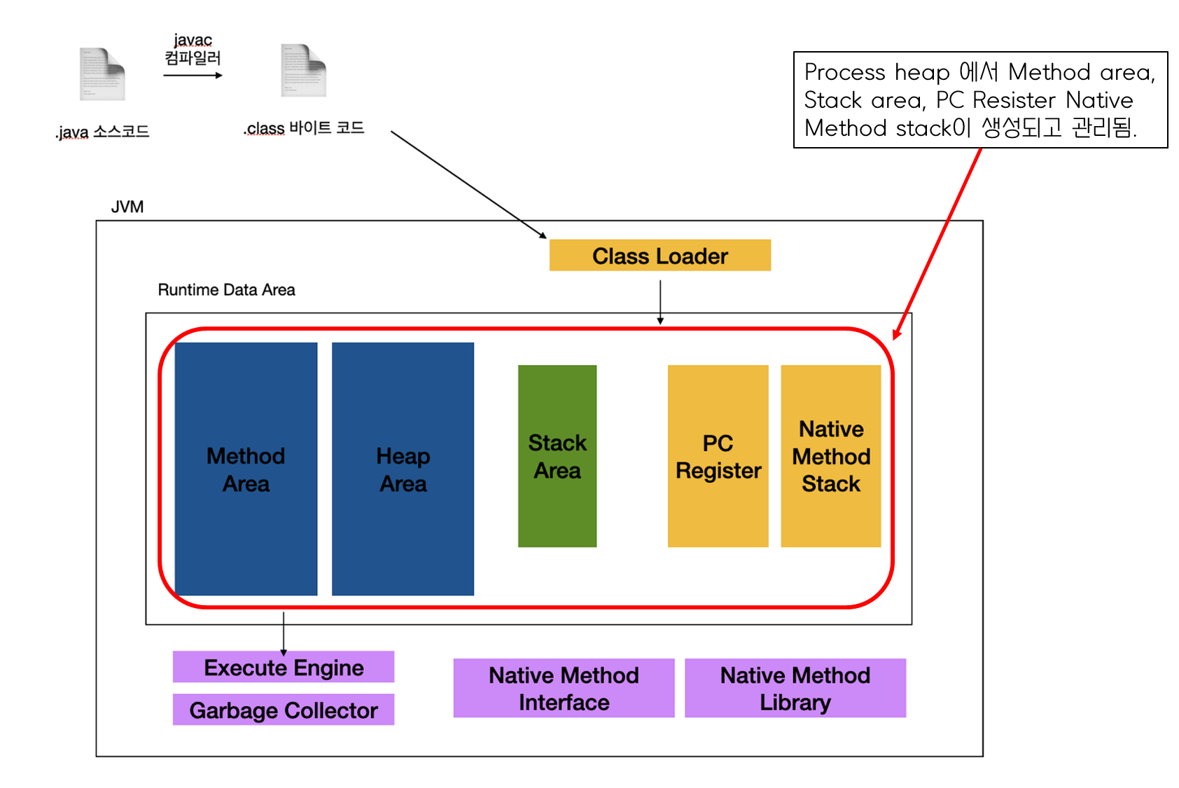 클래스가 로드되고 링크 과정을 거치면서 생성되는 이런 정보들은 JVM의 메서드 영역에 할당됩니다. 이 메서드 영역은 JVM의 가비지 컬렉터의 관리 대상이기도 합니다.