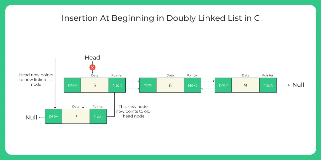 첫 번째 노드의 이전 필드와 마지막 노드의 다음 필드는 아무것도 가리키지 않으므로 null 값으로 설정해야 합니다.