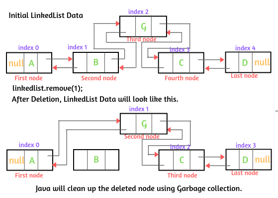 Java LinkedList에서 삭제 작업이 어떻게 수행되는지 알아보겠습니다.