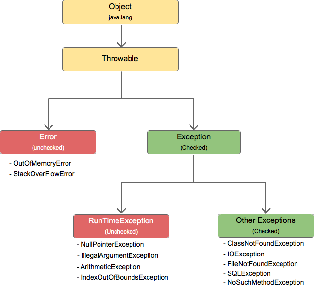 계층 구조 : Throwable은 예외와 오류를 처리하기 위한 계층 구조를 형성합니다. 이 계층 구조는 Throwable 클래스를 상속하는 Exception과 Error 클래스로 구성됩니다.