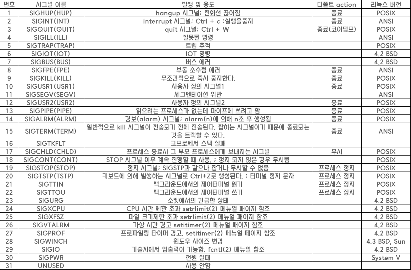 시그널은 프로세스에게 특정 이벤트가 발생했음을 알리는 메커니즘으로, 예외 상황에 따라 적절한 조치를 취할 수 있습니다.