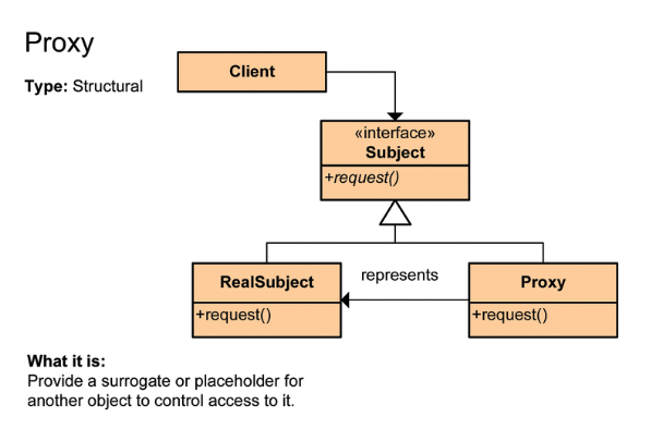 프록시 패턴은 원래 자신이 처리해야하는 업무를 다른 객체에게 위임하여 대신 처리하게끔 하는 패턴이다.