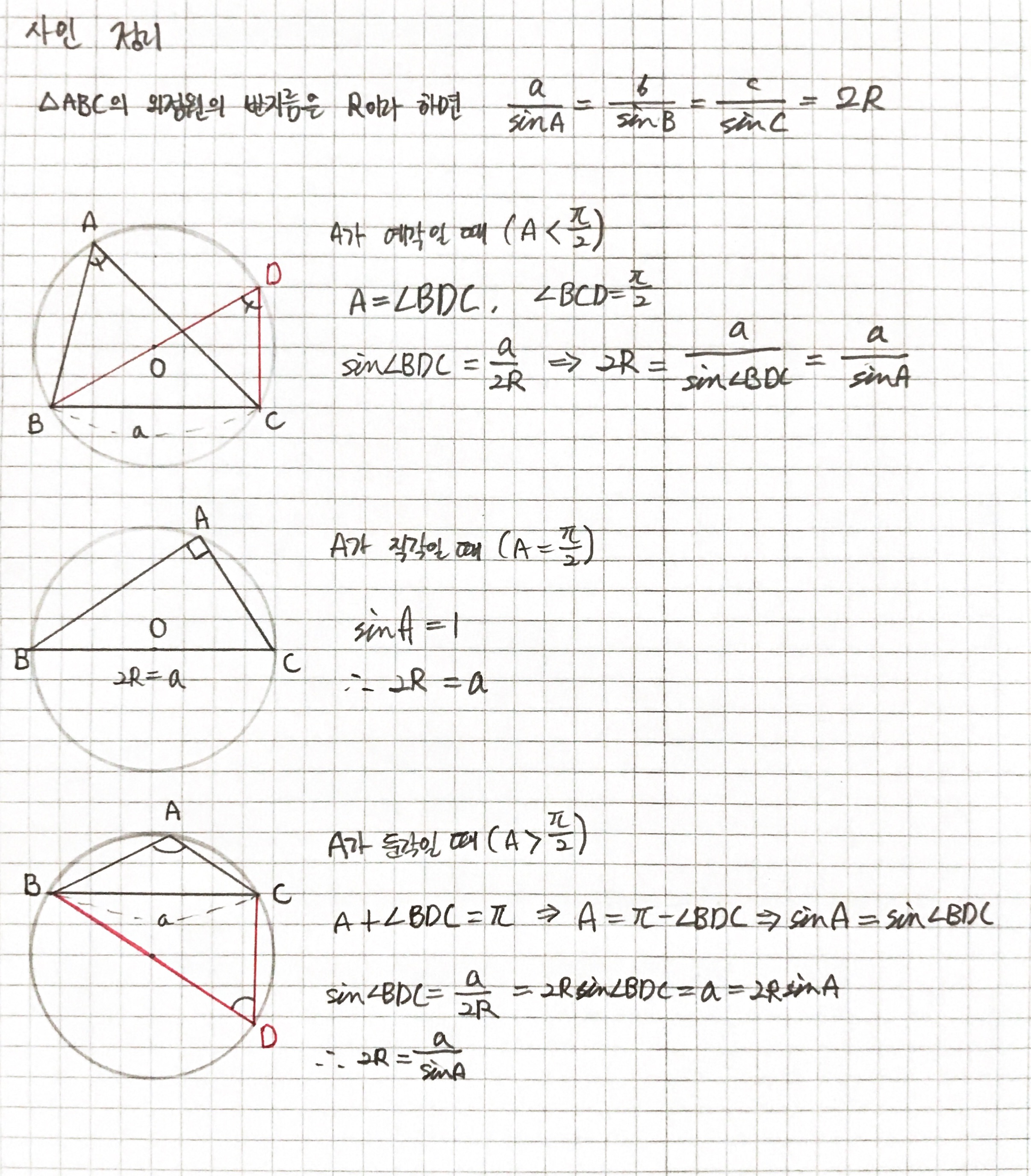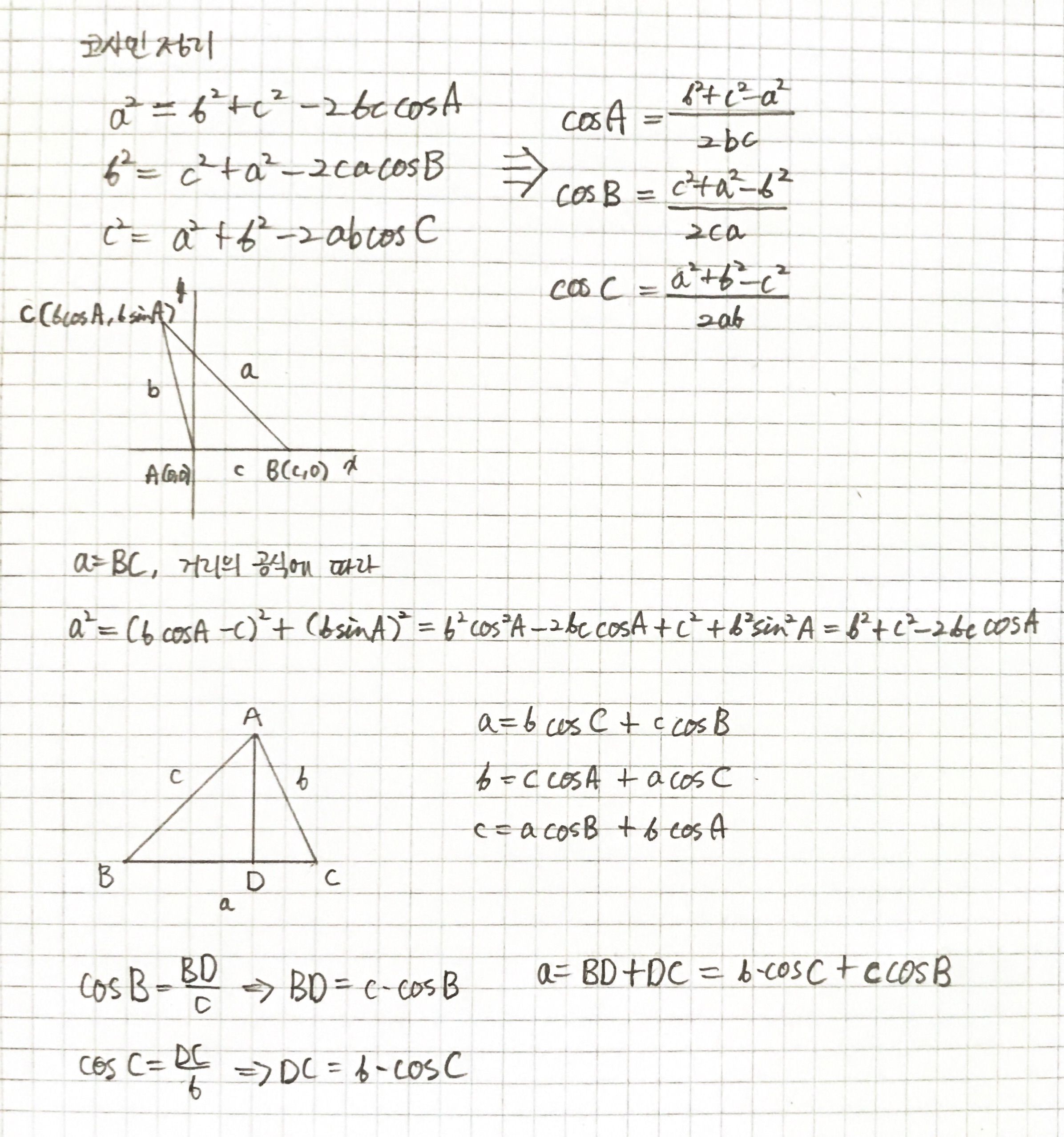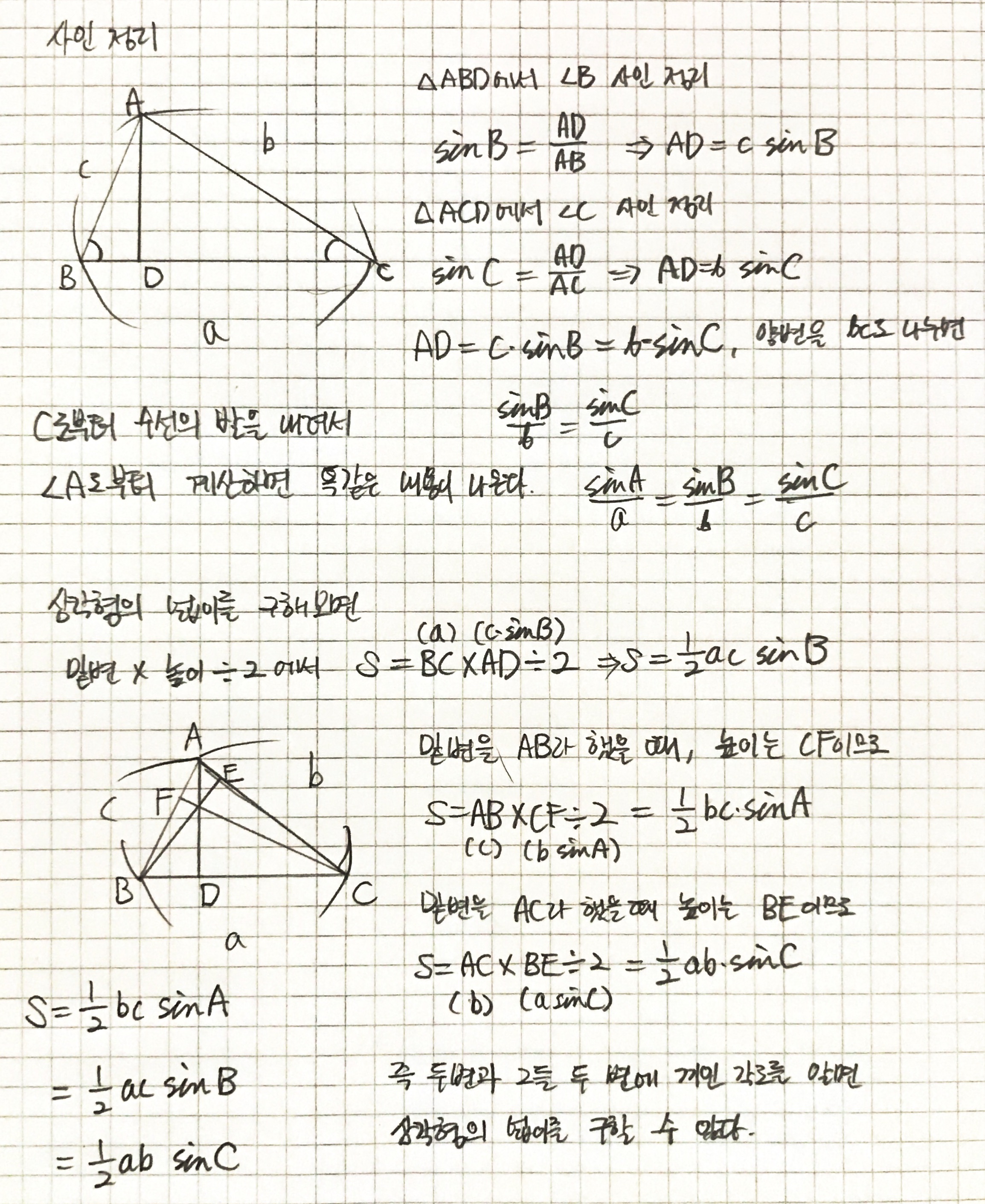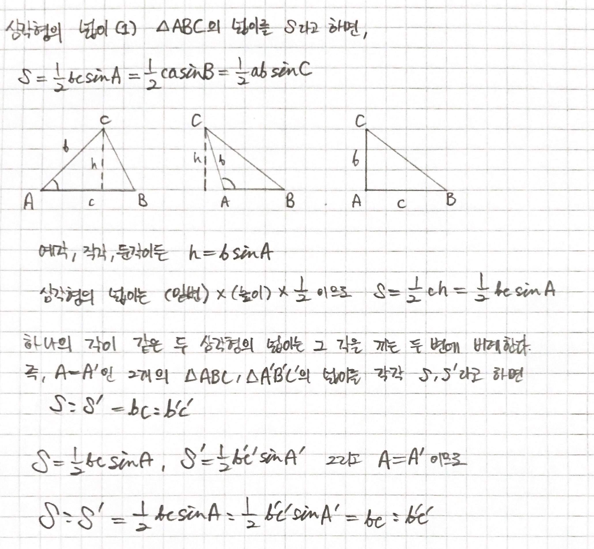 삼각함수와 삼각형(사인정리, 코사인정리, 삼각형의 넓이 등)